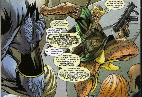 Меченый (он же "Хоукай") также владел японским, и когтистый во всю навязывал Осборну мысль направить именно его, мол, вот он, герой без квирка, что смог своими талантами встать в ряды Могучих Героев Америки, отлично для того, чтобы построить на этом пиар и мотивационную речь. Однако все попытки разбились об один здравый аргумент — Лестер был е&#чим психопатом, причем совершенно нехаризматичным. Веном (он же "Человек-Паук") был ничем не лучше, Арес и Сентри были цепными песиками, без которых никак нельзя было обойтись, Мунстоун (она же "Мисс Марвел") умудрилась отбрехаться вперед него, а про Нох-Варра даже вспоминать не стали, нельзя было пришельцу доверять такое дело. Поэтому пришлось ему представлять Мстителей — "благо ты же родился там".